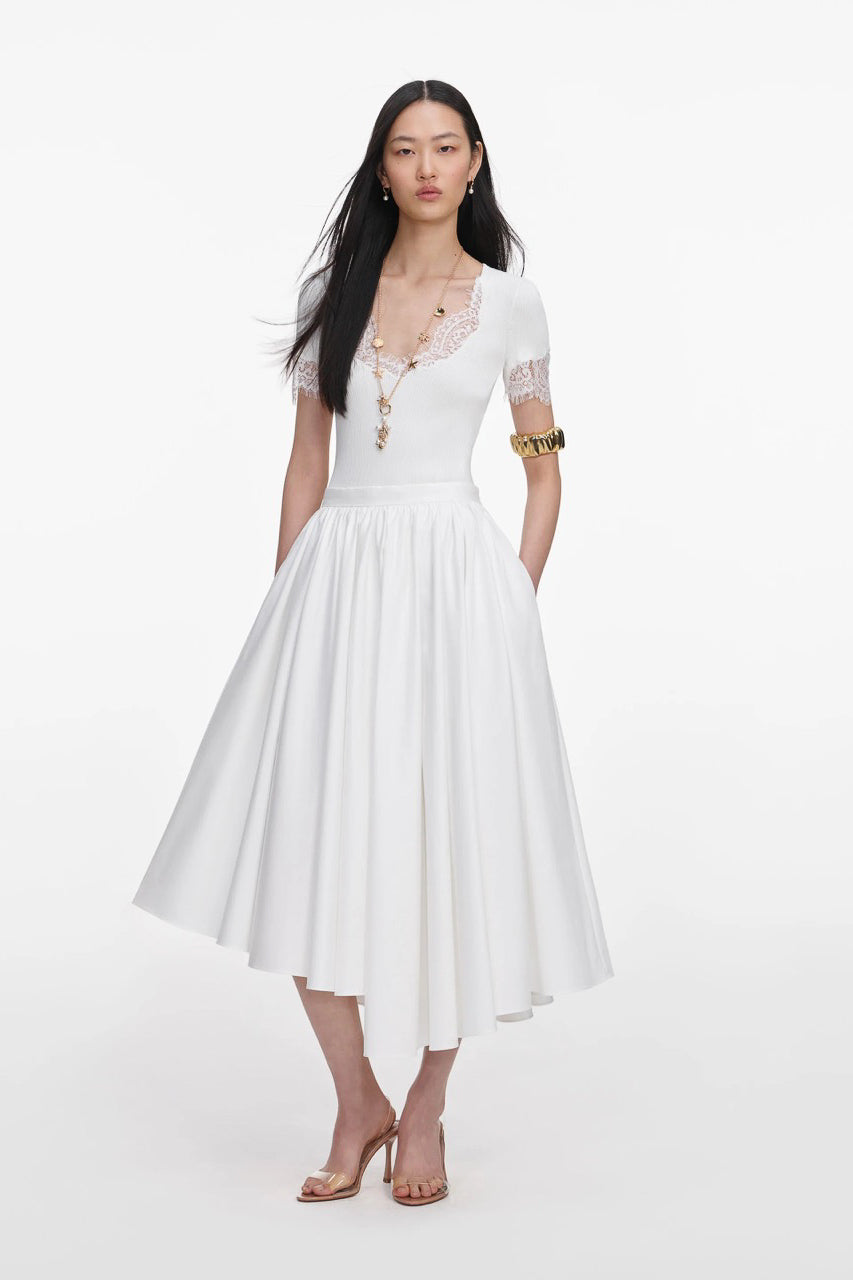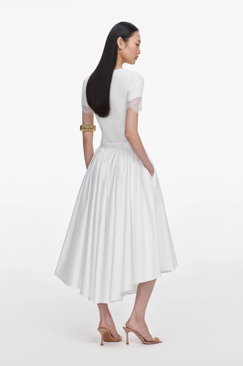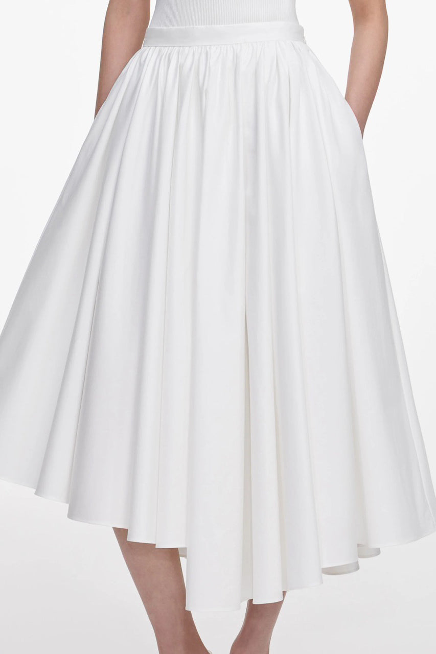 WHITE COTTON POPLIN MIDI SKIRT
