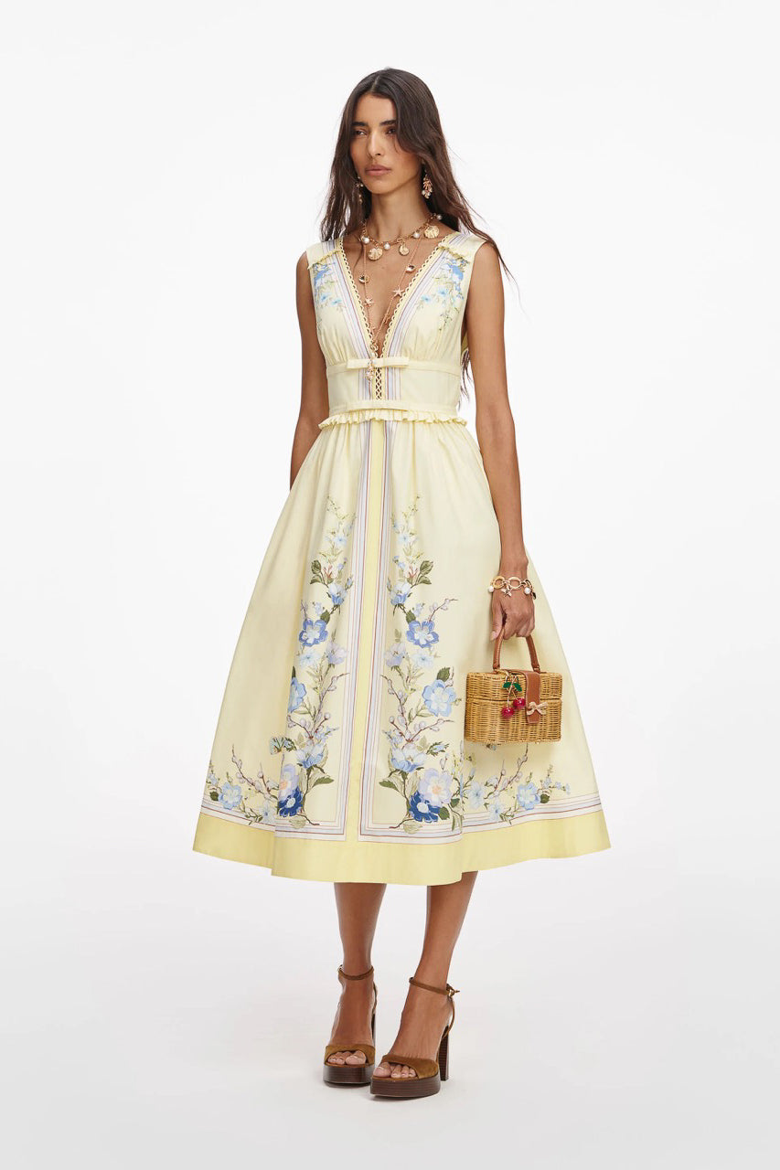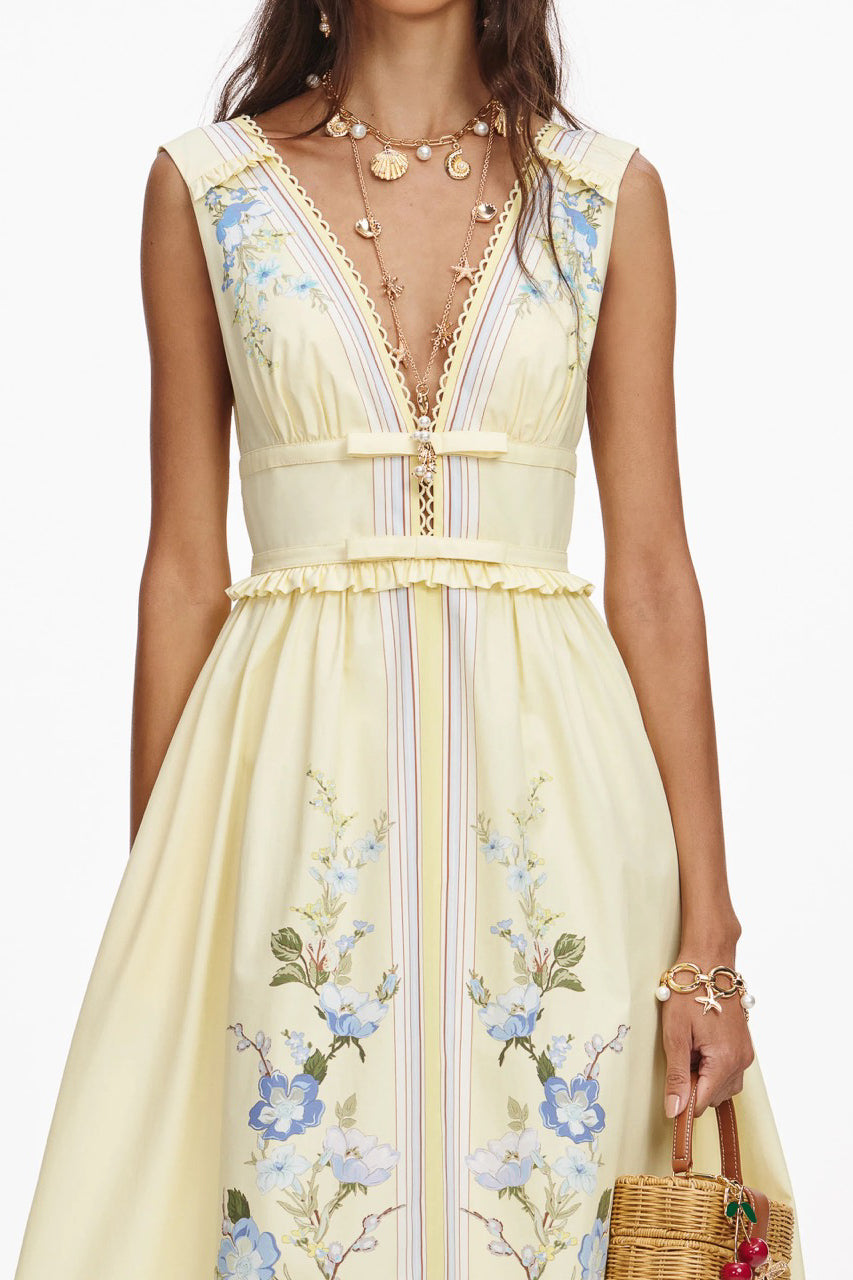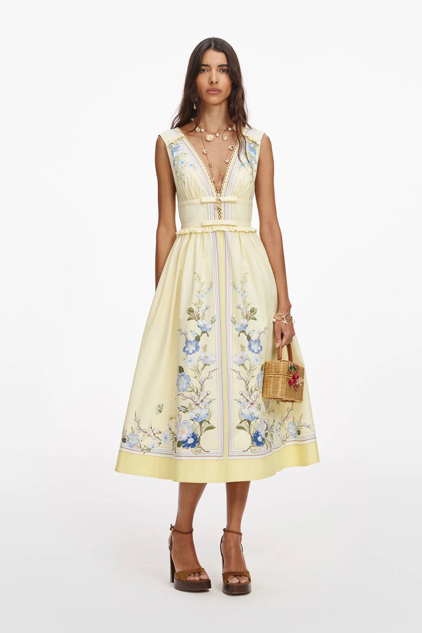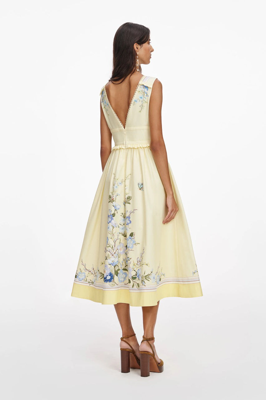 YELLOW FLORAL COTTON MIDI DRESS